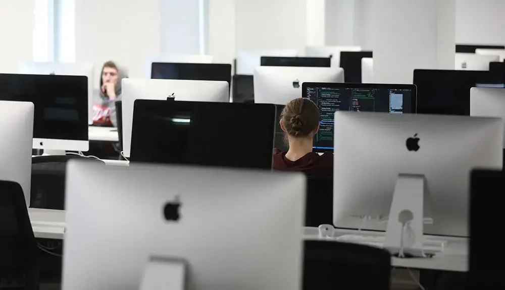 In the past, terminals occupied most of the desk, but today they are much slimmer.