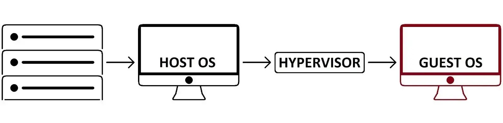 There are two layers between a VM and server hardware — an operating system and a hypervisor.