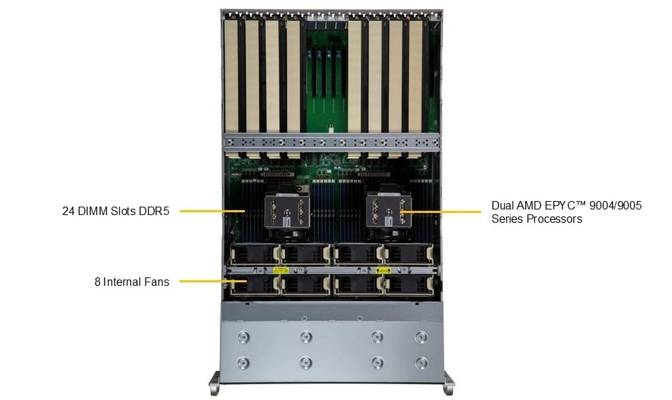 - AMD EPYC™ 9004/9005 series processors Up to 160C/320T, up to 512MB cache per processor TDP power up to 400W