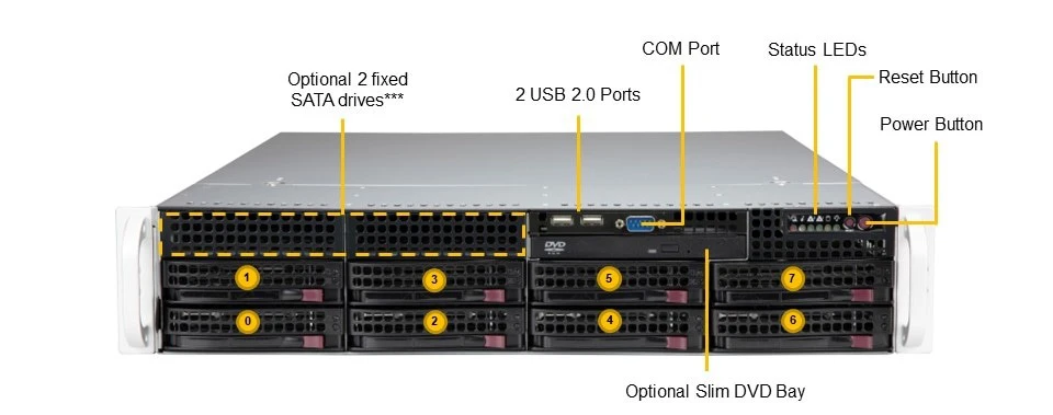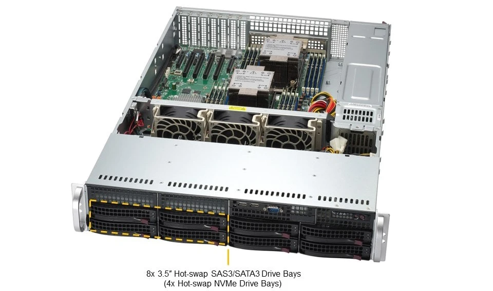 - 8 x 3.5" hot-swap (SAS/SATA/NVMe) M.2 slots: 2 x M.2 NVMe (PCIe 4.0 x2)
