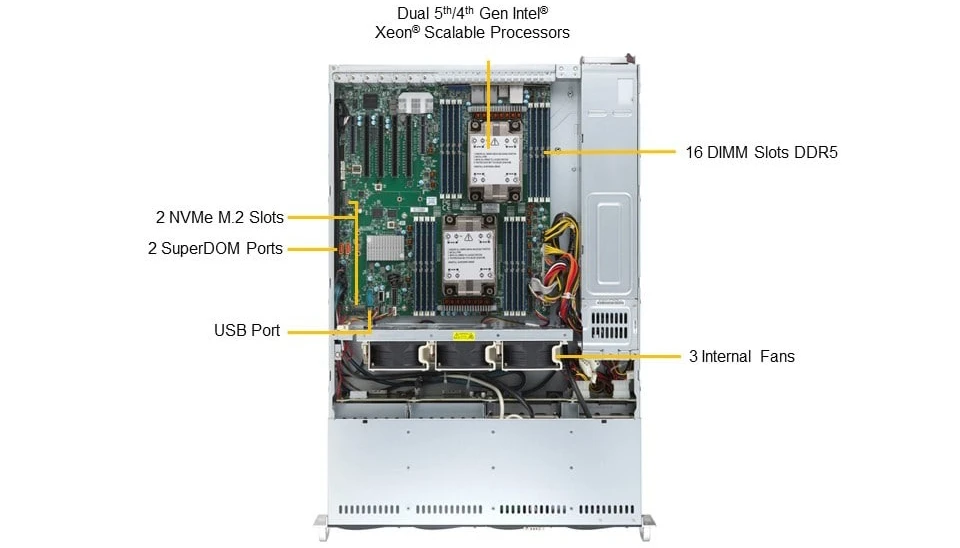 - 16 x DIMM DDR5 up to 4TB DDR5-5600MHz/4800MHz ECC Registered RDIMM