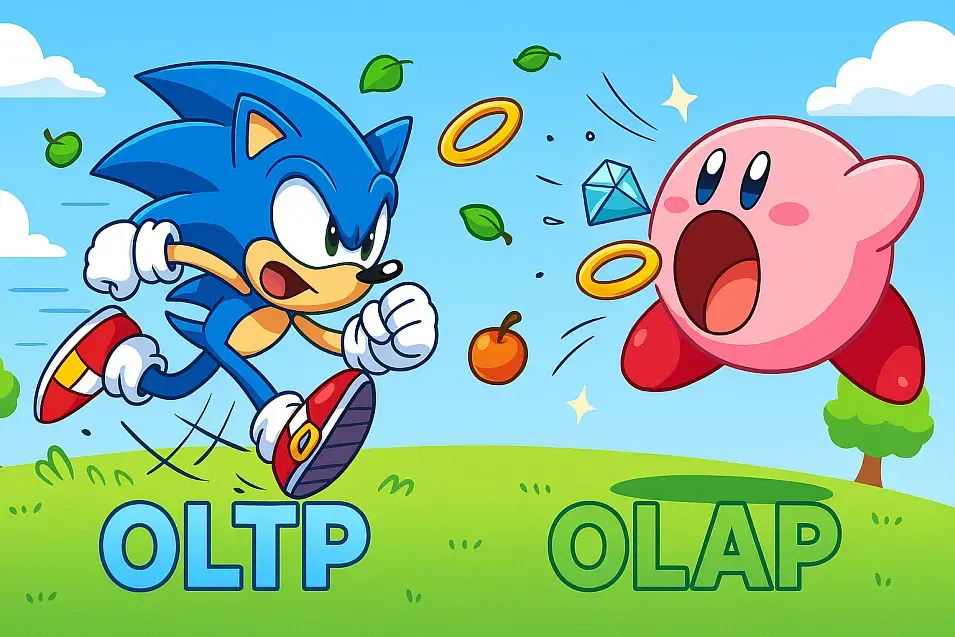 Pour les transactions en temps réel, vous avez besoin d’un type de système — OLTP (Online Transaction Processing). Pour l’analyse, vous en avez besoin d’un autre — OLAP (Online Analytical Processing). Un OLTP, c’est comme Sonic le Hérisson : toujours en mouvement, fonçant à pleine vitesse, réagissant instantanément aux obstacles et collectant des anneaux en chemin. Un OLTP traite chaque transaction rapidement et de manière prévisible. Un OLAP, en revanche, ressemble plus à Kirby : il absorbe tout sur son passage : tas d’objets, ennemis, mondes entiers. Les systèmes OLAP absorbent des volumes massifs de données — millions et milliards de lignes — afin de pouvoir ensuite les digérer et les transformer en quelque chose de significatif, comme un rapport.