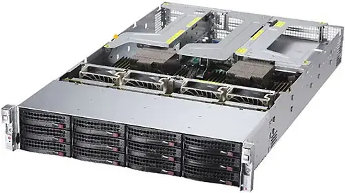 - 12 hot-swap 3.5-inch drive bays: 12 SATA3 by default or 8 SATA3 + 4 NVMe via optional kit or 12 SAS3 via optional SAS kit